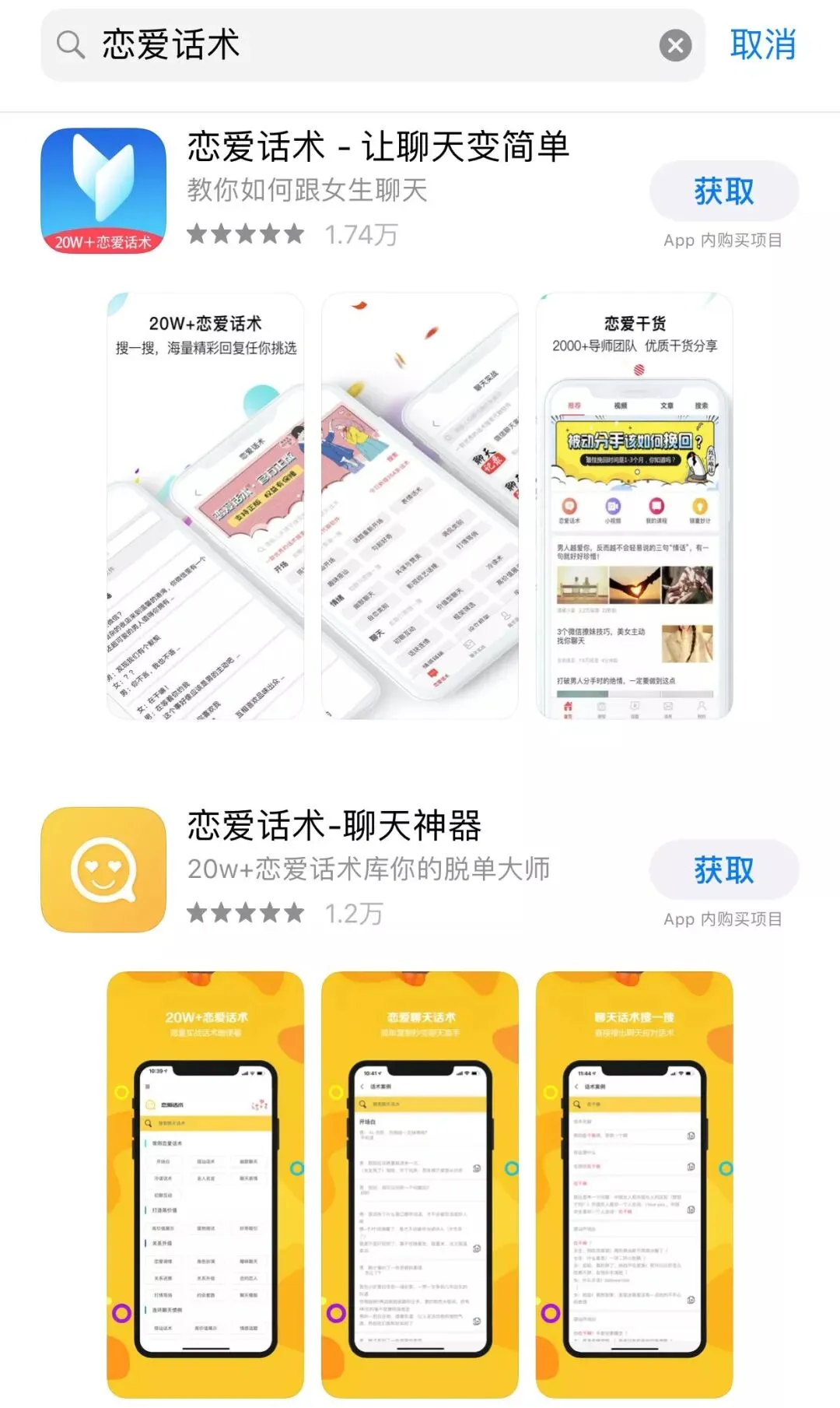 发现同样问题的小李告诉记者,他付费下载了几个“恋爱话术”软件,发现内容几乎完全相同,都是网上随处可见的“聊天技巧”,但这类制作简陋的小众软件却收获了大量“五星好评”。他判断,应该是有大量“刷好评”、“下载骗局”在苹果软件商店肆虐。