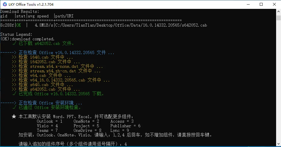 支持自定义安装组件,默认只下载部署 Word、Excel 、PowerPoint。