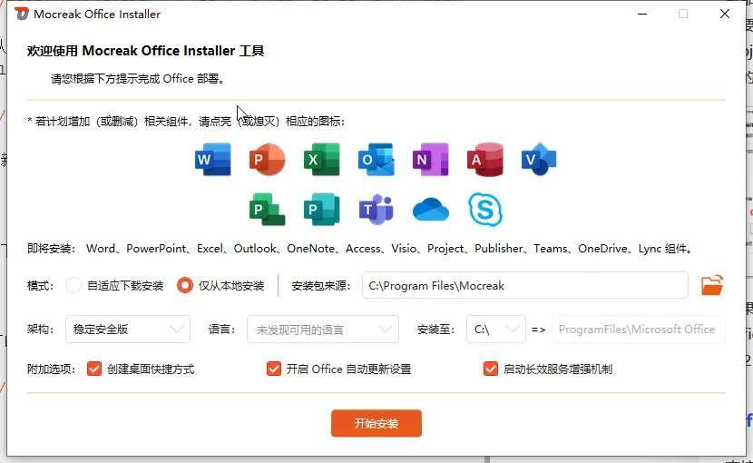 Mocreak 是一款近期发布的一键下载、安装、部署并激活 Office 的利器,支持 Win11、Win10 等操作系统,自适应匹配 x86、x64 架构。