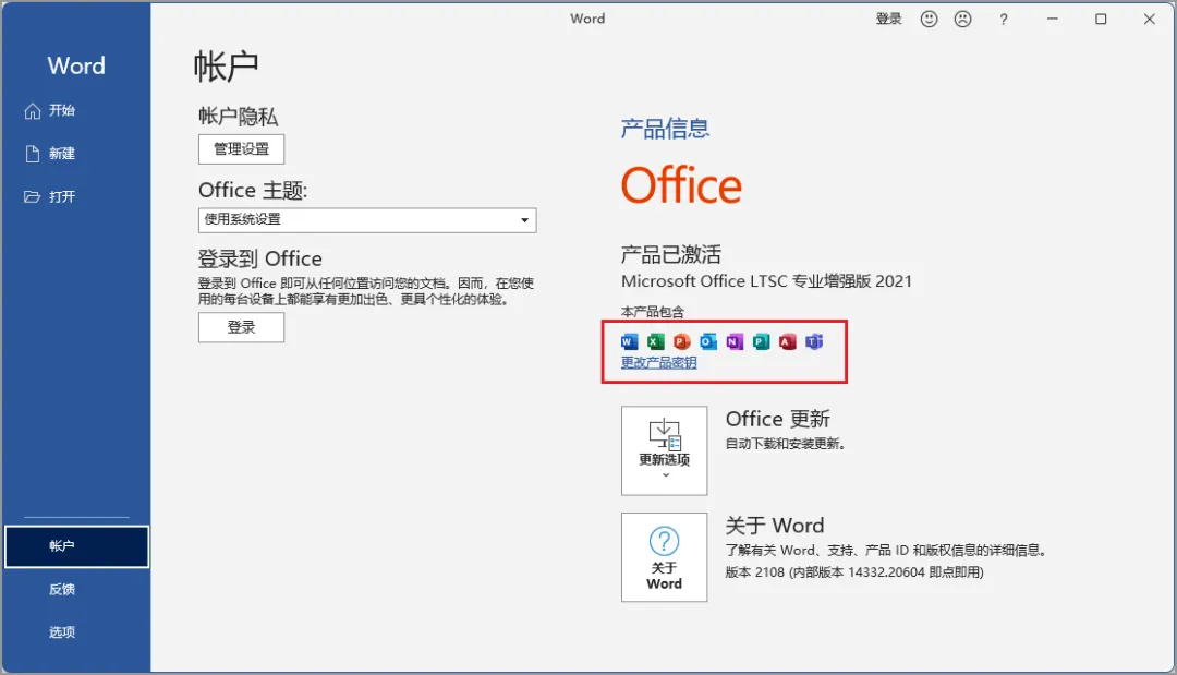 安装完成后 Office 已自动激活,可以打开 Word 进行查看:
