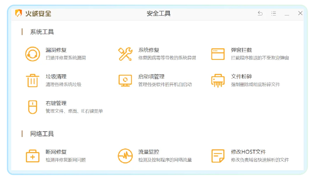 如果你有其他扩展需求,可以在“安全工具”的页面下载额外的插件。我最推荐右上角的“弹窗拦截”,这也是我唯一安装的火绒扩展插件。