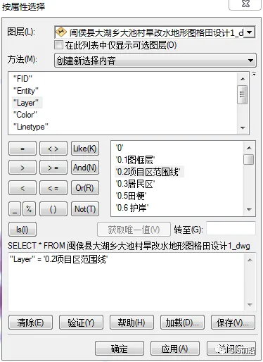 打开“选择——按属性选择”,进行如下设置,选中图层中的项目范围线,