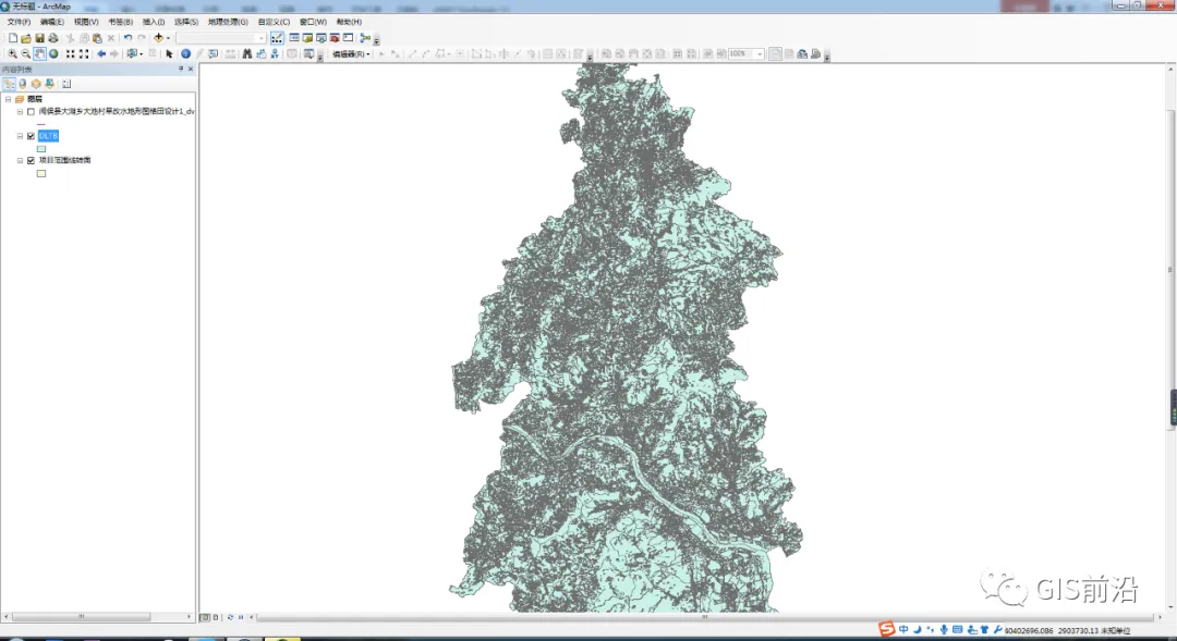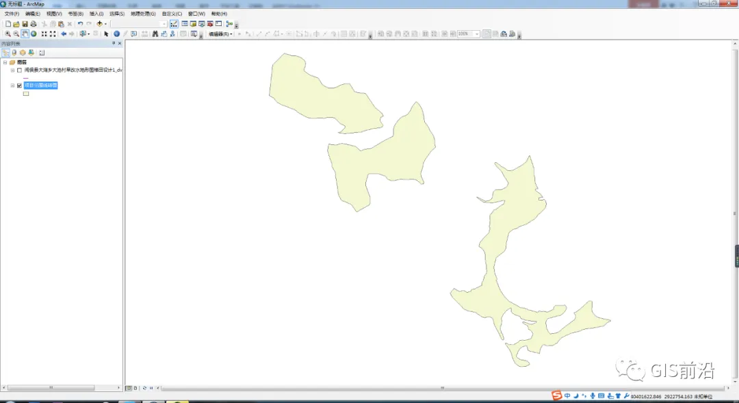 将需要进行套库的CAD文件复制一个副本,在CAD中打开副本,打开除项目区范围线以外的所有图层,并全部删除,输入purge进行图层清理,清理完成后打开范围线图层并保存;在Arcgis中加载只有范围线图层的CAD文件的面图层,然后将面图层通过工具箱转换为面状SHP文件,然后重复方法一的3、4步骤。