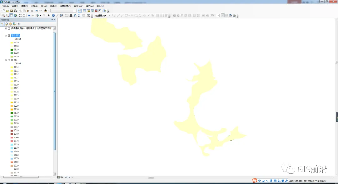 打开项目区所在县市的土地利用数据库,打开“土地利用(TDLY)”下的“地类图斑(DLTB)”(有的地区数据库直接是DLTB,没有TDLY图层),打开后记得在“属性——符号系统”中匹配二调图例,并添加标注,使得数据库中的各土地类型一目了然。