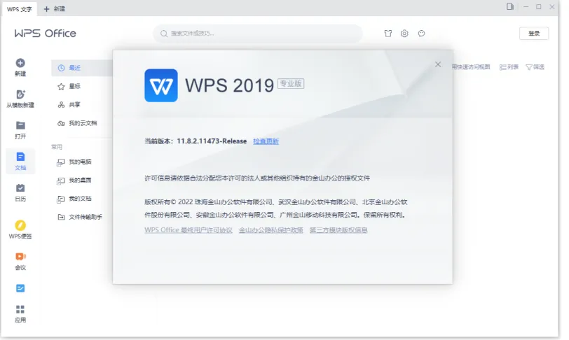 WPS Office 2019专业增强版 v11.8.2.12316 永久激活版