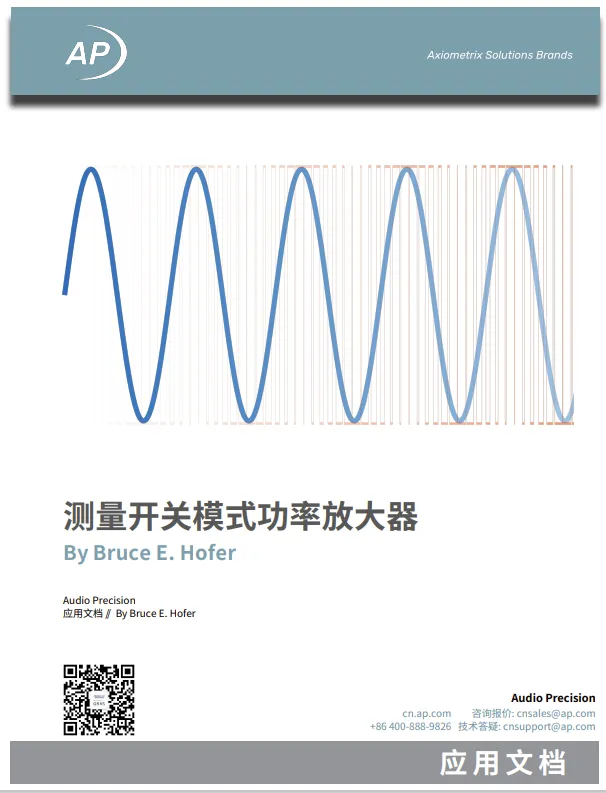 作为 AP 的创始人之一——Bruce Hofer 的这篇应用文档系统性地介绍了开关模式功率放大器的测量方法,涵盖噪声、失真、频率响应、效率等关键性能指标的测试技术,并提供了实用的测量方案和仪器配置建议。