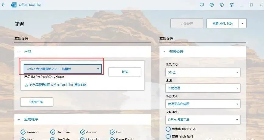 打开文件夹office tools,点击部署,选择需要安装 Office 的版本,这里选择office专业增强版2021