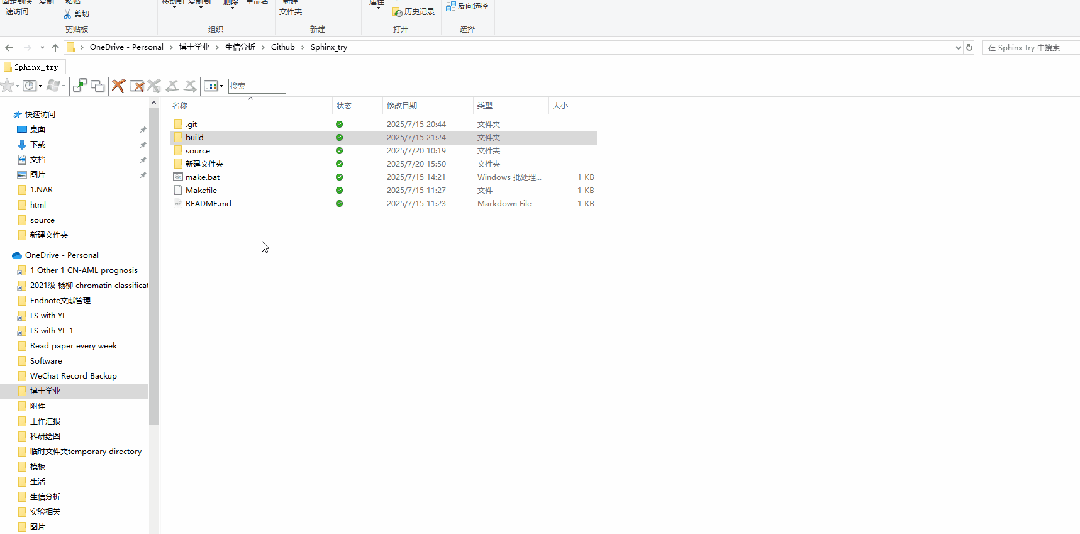 修改完成后,我们再一次在终端中使用 ./make.bat html 命令。