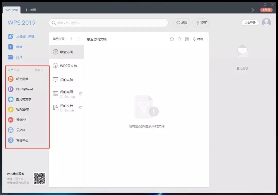 WPS Office 2019 左侧栏集合了稻壳商城、云文档、PDF 转 Word、数据恢复、WPS 便签等,需要的功能一目了然,一触即达。