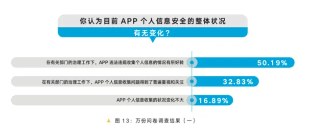 2、万份问卷调查结果显示,过半受访者认为APP个人信息安全状况有所好转