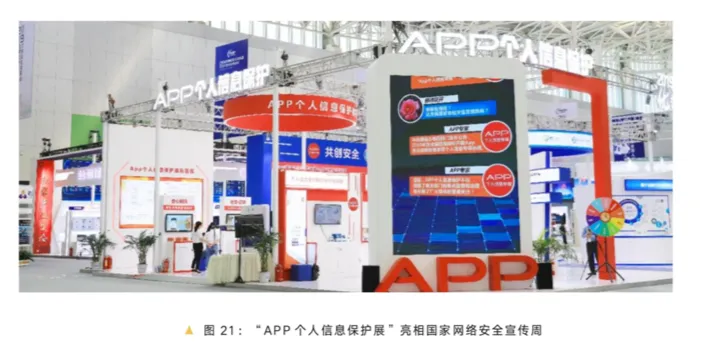 2019 年 9 月,国家网络安全宣传周网络安全博览会在天津梅江会展中心举办。由APP 专项治理工作组主办的“APP 个人信息保护展”首次亮相国家网络安全宣传周, 展会期间,工作人员与广大观众进行科普互动,良好的互动成效成为本次展览的一大亮点。