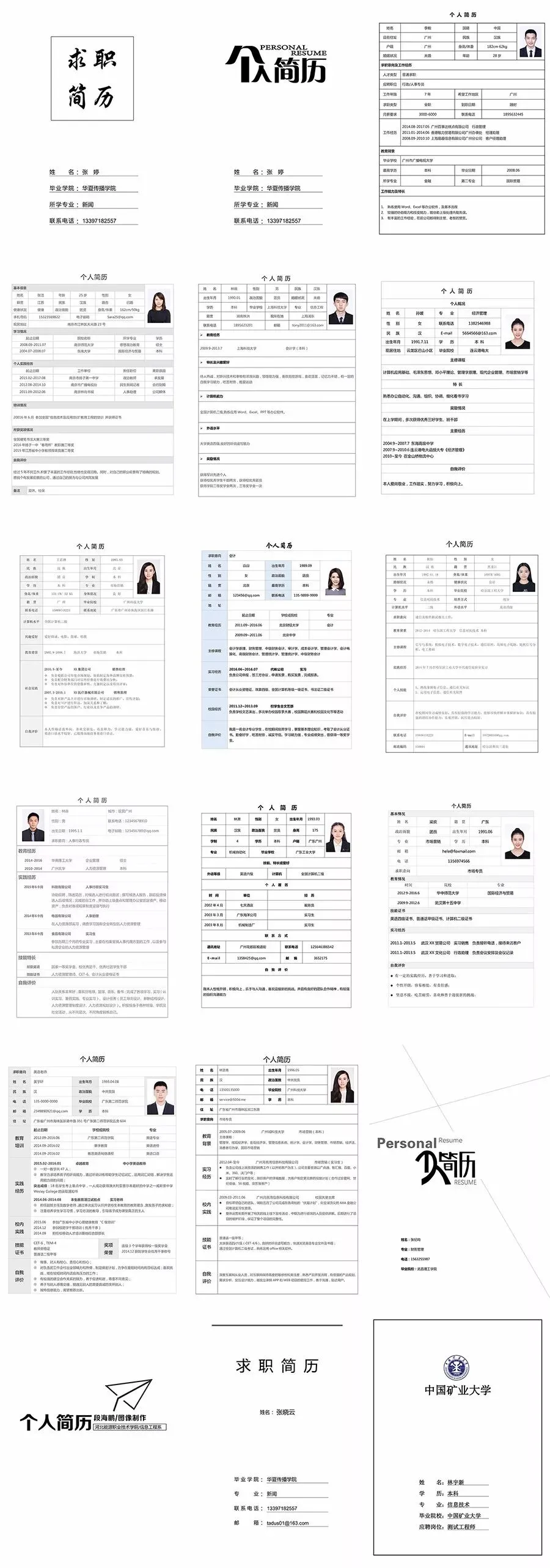 【免费资源】152套简历模板合集打包下载(包含JPG预览图,docx格式可)