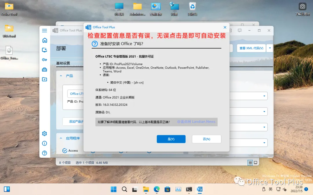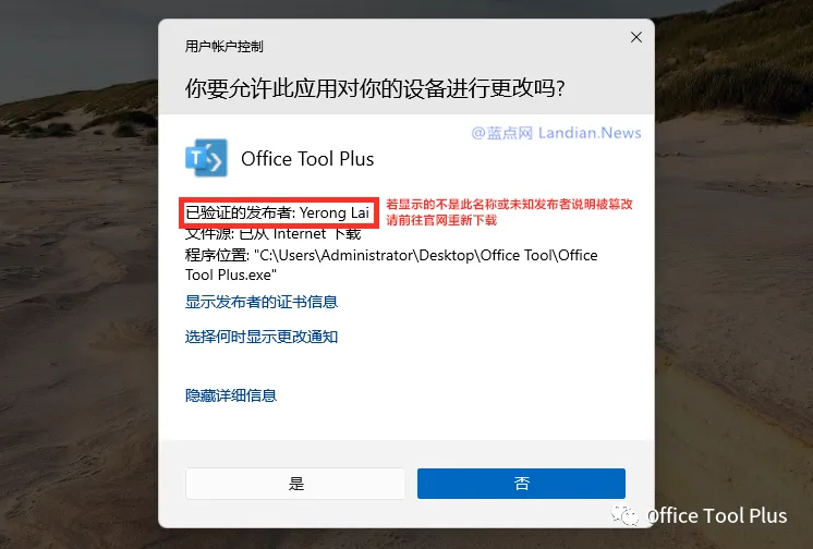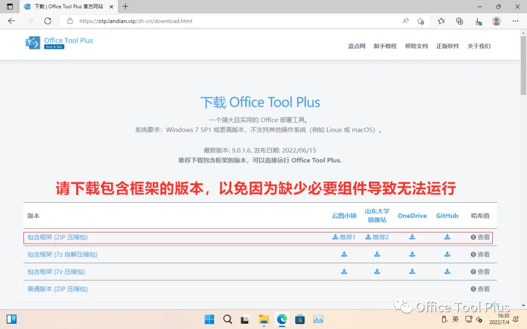 Office Tool Plus 官方网站:https://otp.landian.vip/ 只建议从官网下载,其他途径可能存在篡改影响安全。版本选择:下载时请选择 Office Tool Plus 包含框架的版本,国内用户下载可以从山东大学镜像站速度更快。解压文件:下载后解压软件不要在压缩包里运行。运行时请检查弹窗是否为Yerong Lai,若不是说明被篡改。