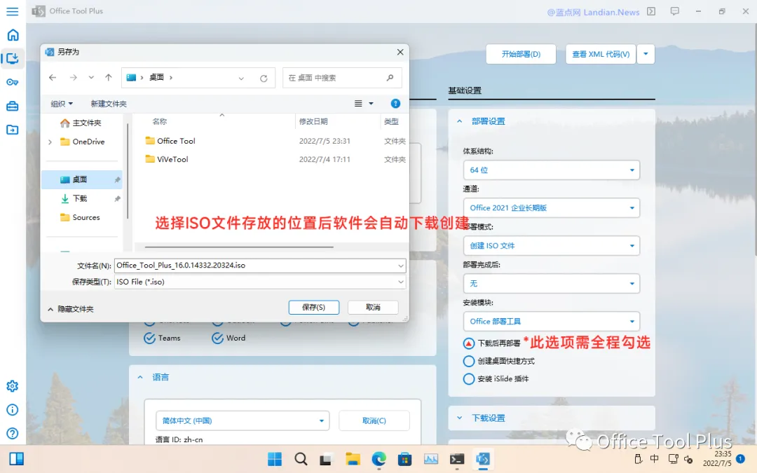 但 Office Tool Plus 有个功能是制作 ISO 格式的镜像文件,也就是说下载后我们可以制作镜像保存方便后面用,这样在网速较差的环境里不必因为下载耗费太多时间,如果在内网环境中有多台设备需要安装无需重复下载。