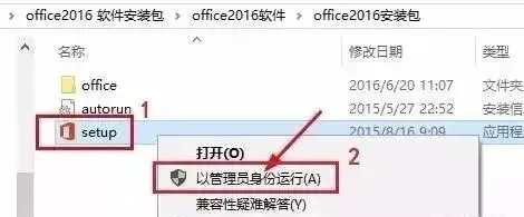 2.在安装包文件夹内找到“setup.exe”文件,选中右击选择【以管理员身份运行】