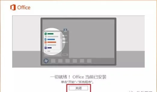 4.Office 2016安装完成,点击【关闭】