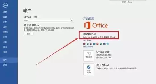 8.打开Word 2016,点击【账户】,在右侧产品信息栏会显示“激活的产品”
