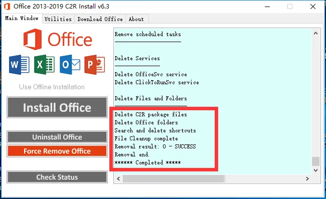 当你发现未卸载成功,可以点击软件的“Uninstall Office”进行卸载。如果还是不行,那我们就只能使用暴力卸载“Force Remove Office”,保证服服帖帖的。