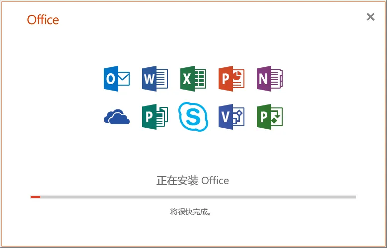 等看到下图就可以安心等着安装完成,进度条推进有点慢,耐心等待就好。