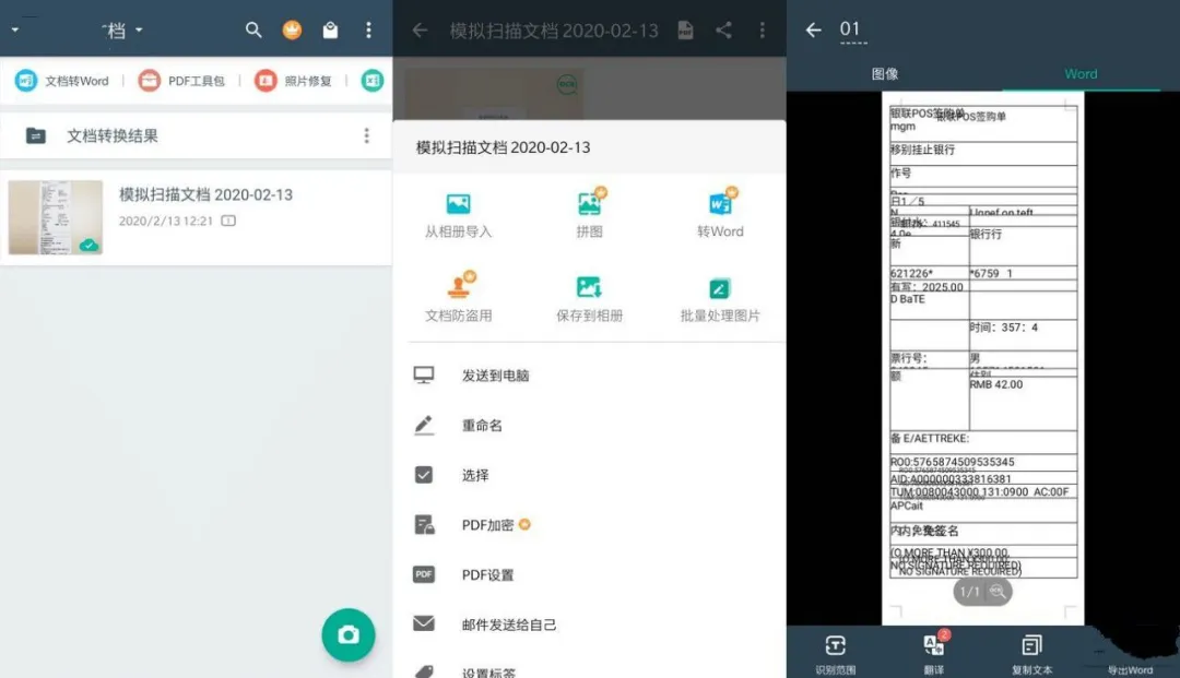 识别后的文字可以进行在线编辑调整、翻译,并且可以导出为word、txt、PDF、图片等多种格式,是移动多功能扫描仪。