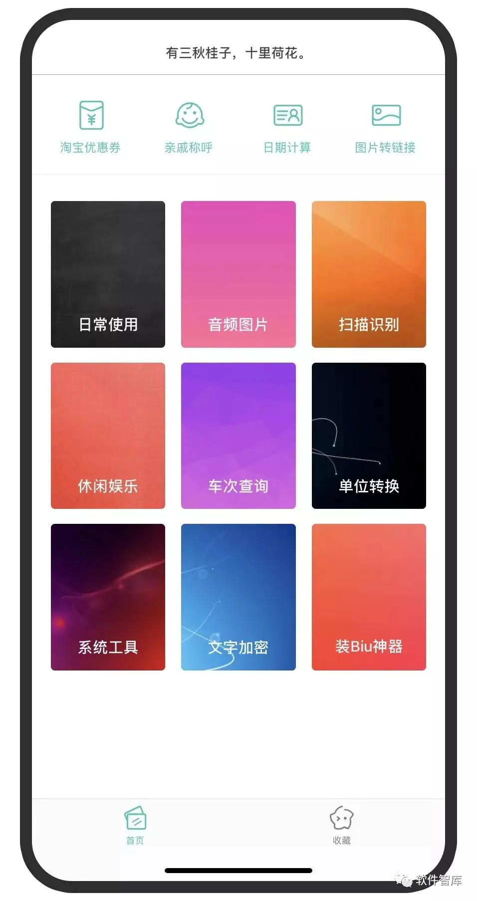 今天小编给大家分享堪比一个木函的IOS软件,名字就叫实用工具箱,是一个聚合工具箱,软件界面极致简约,首页包含日常使用、音频图片、扫描识别、休闲娱乐、车次查询、单位转换、系统工具、文字加密、装Biu神器九大工具板块,在每一个的板块下又分别包含了多个小工具;
