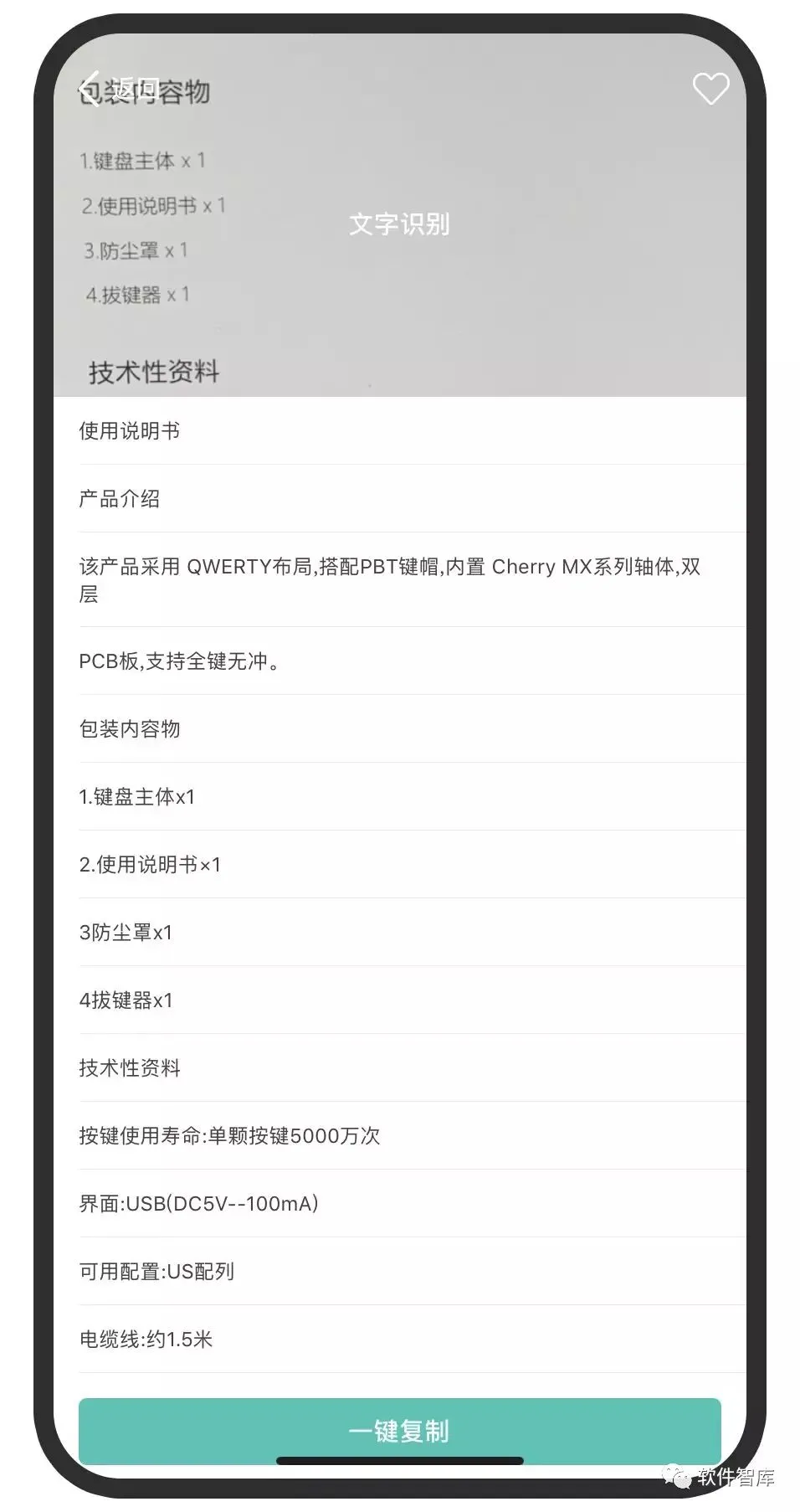 3.文字识别,一个简单的文字识别功能,使用方法非常简单,直接拍张需要识别文件的图片即可进行文字识别