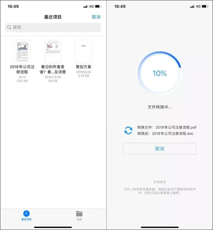 这款APP的操作就很简单啦,比如要将PDF转换成Word,直接选择格式,然后添加文件就能转啦!