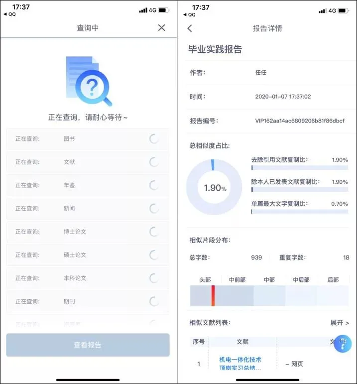 查重结果清晰明了: