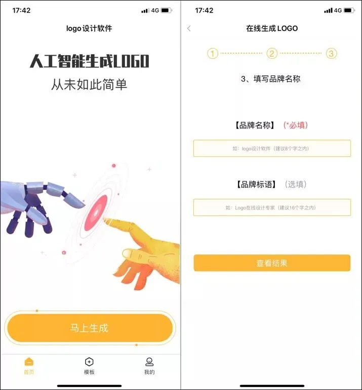 ①一键生成:可自定义设计Logo图标,只需三步即可完成一个Logo。