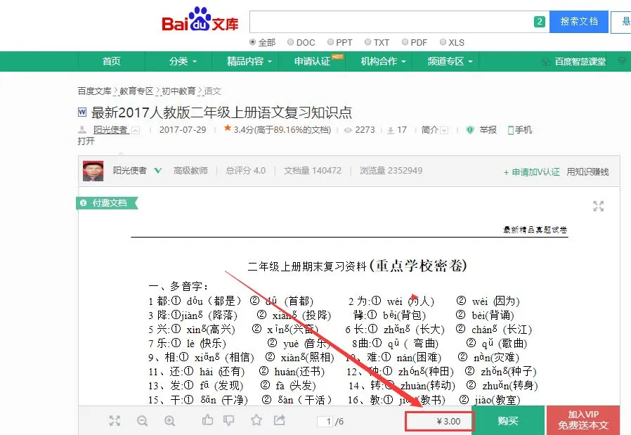 如图,找了一个需要3元才能下载的文档,然后“VVV”回车,也是没有问题的。