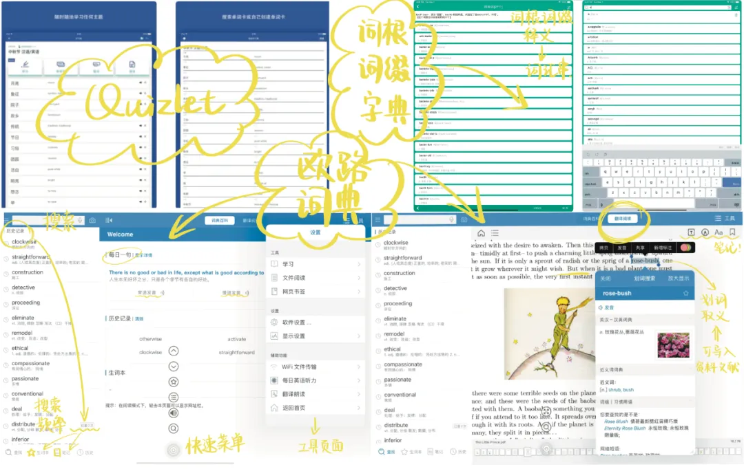 海量权威和网络词库,也可以自制扩充词库,支持多语种查询和翻译,功能丰富强大。语音、拍照、导入文档翻译,多方式标注、笔记,云端同步生词本、笔记、历史记录,每日一句、每日听力……学英语神器,值得拥有!