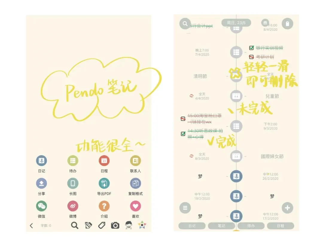 简洁舒适,一目了然。按照时间轴的形式,可以添加日程、清单、备忘录、日记等,非常方便,有一种建立起记忆宝库的感觉~