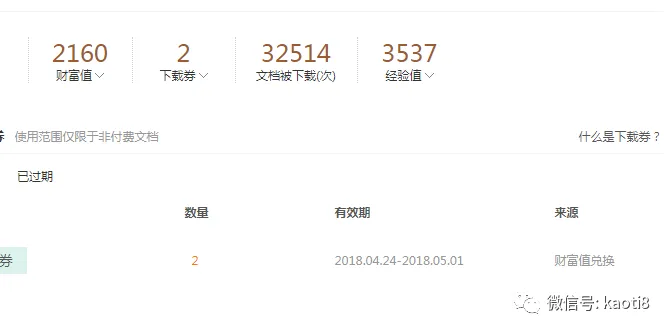 这个方法其实不麻烦,就是自己在百度文库上传一些整理的文档,比如资料考点及考试真题,及自己原创的一些比较好的文档就可以!然后设置下载财富值。当别人下载了你的文档,你就有财富值收益啦。新上传的公开文档若被评为优质文档,则可获每篇下载券+1奖励。