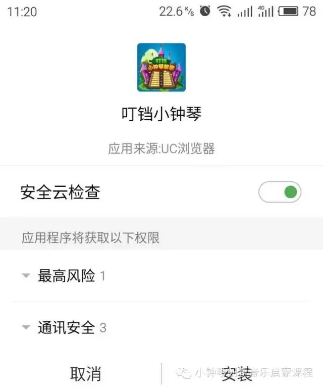 7、安装完成后,打开手机桌面的 叮铛小钟琴 进入软件