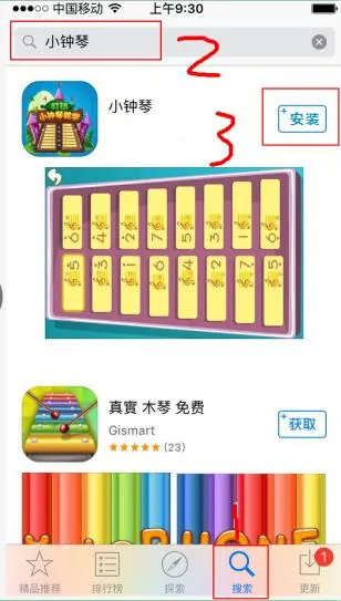 2、点搜索-输入“小钟琴”搜索点击:安装 即可