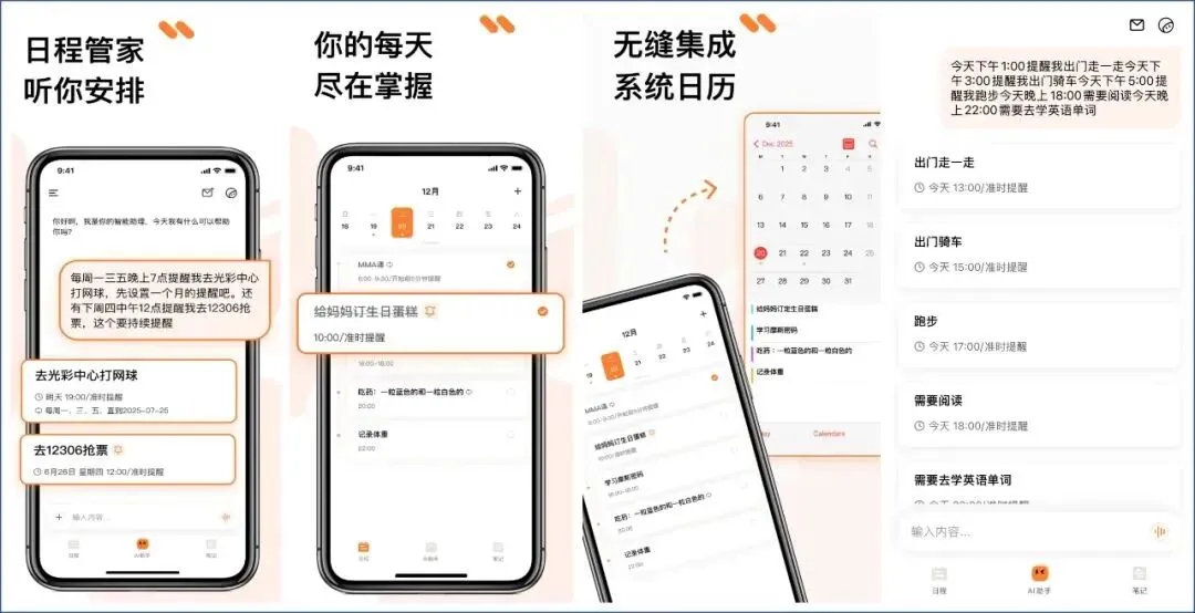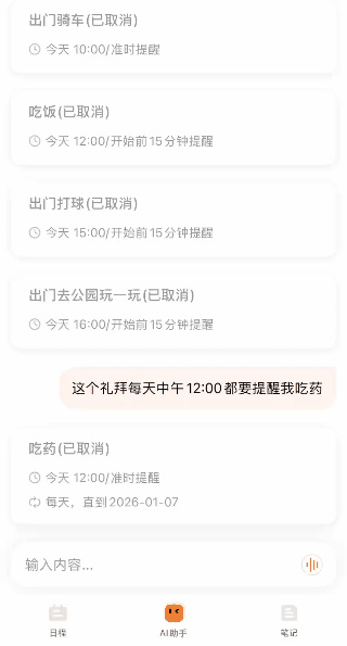 它支持语音输入,也支持文字输入,语音识别速度很快,并且语音识别非常精准,再多的日程也可以很丝滑的加载。