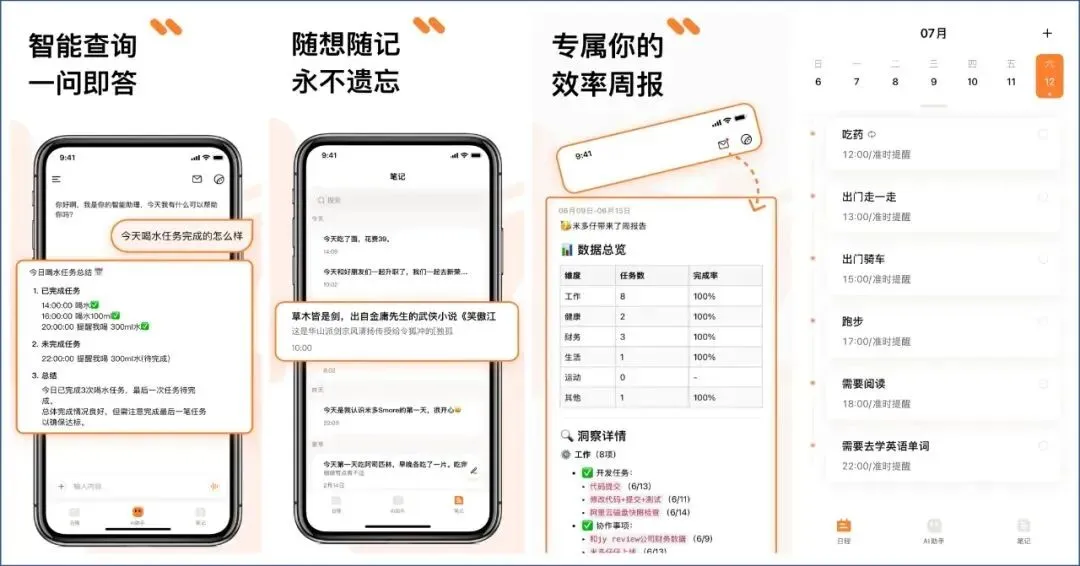它支持专属效率周报功能,自动生成每周总结报告,自动生成节奏趋势和任务分析,可以用作你的私人效率助理。