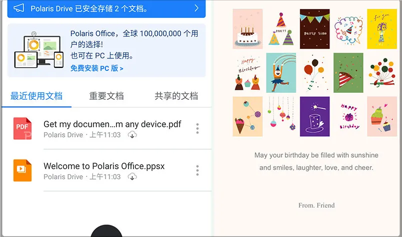 Polaris Office Pro 是一款功能强大的办公软件,可用于处理文档、电子表格和演示文稿。它支持包括 Microsoft Office 文件格式在内的多种文件格式,并能轻松与其他用户共享文件!