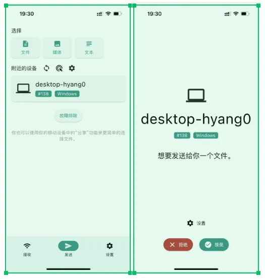 推荐一款手机、电脑间文件互传的软件 localsend ,界面做得非常漂亮。