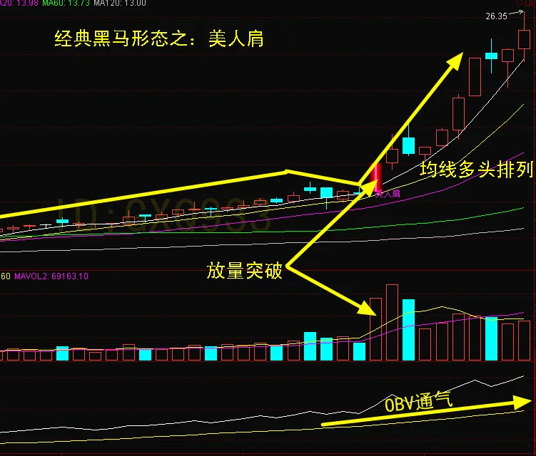股价先拉涨停,再缩量洗盘,肩膀(A)不高于脖子(B),5 日、10 日均线通气,像新娘披着的一字肩婚纱,优雅,却不失力量。