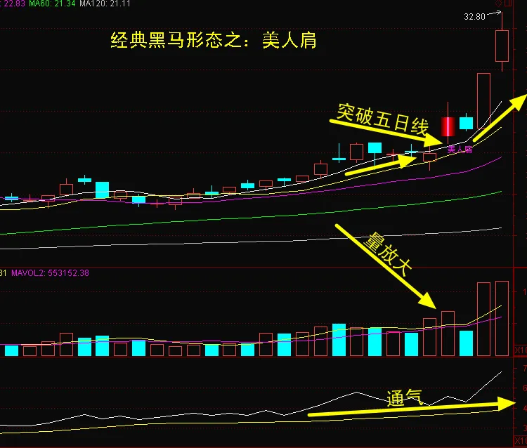 美人肩:REF(ZT,N) AND 上移 AND 通气 AND 放量 AND 肩颈比<1.1;