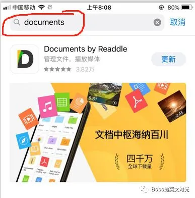 步骤1:在苹果商店apple stores里搜索并免费下载Documents PDF。