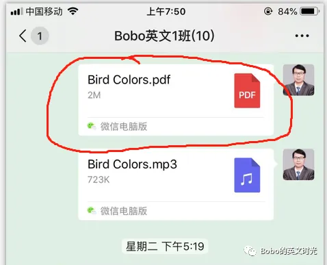 步骤2:回到我们微信群,找到本周要读的PDF文件,打开该文件