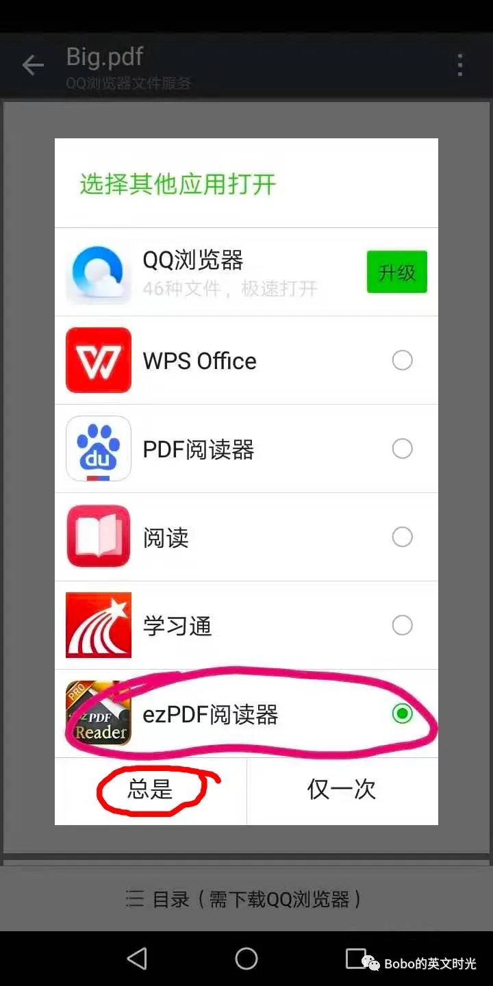 步骤4:选择ezpdf阅读器,选择总是