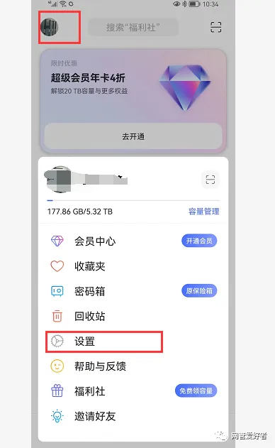 点击我的云空间,里面有具体的设置