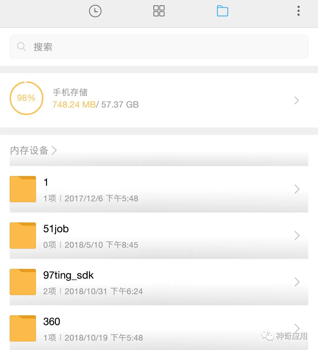 点击上方的小文件夹图标,可以看到详细的文件情况。看神哥的存储空间几乎都被装满了,想不想猜猜里面都安装了什么呀??