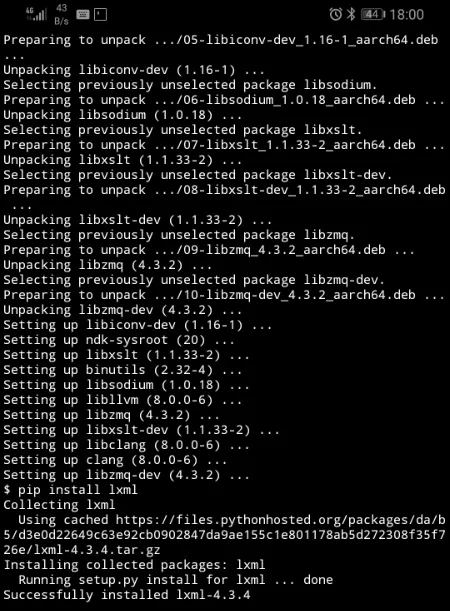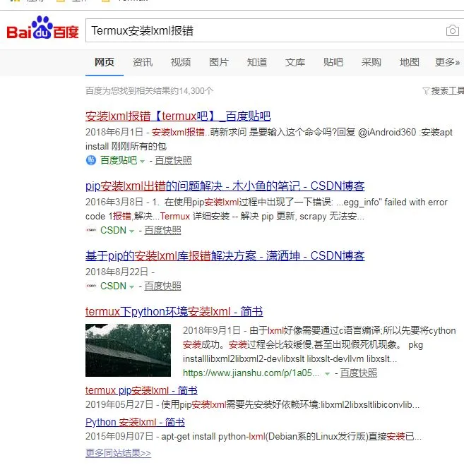 这一步阻塞了很长的时间,可以看到网上针对lxml的安装不管是linux系统还是咱们的Termux,都存在这很多的求助帖。
