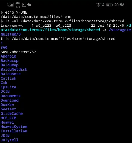 首先我们输入termux-setup-storage将手机目录共享给termux,完成后会在home目录下多出一个storage的文件夹。