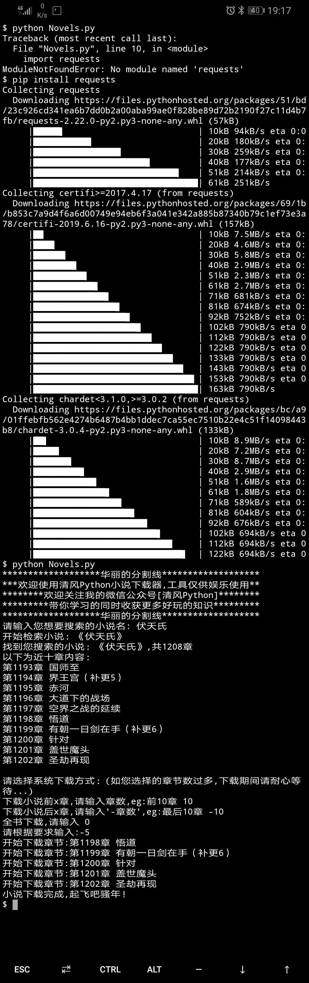 公众号回复安卓开发,即可获得Termux的离线安装包和小说下载的脚本。从此手机在手,天下我有,带你走上python超神路!