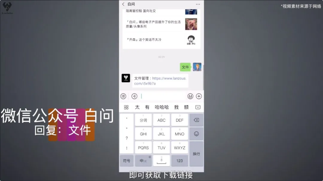 【好用】微信文件太多手机太卡?小雨一招帮你搞定 视频版 #你确定不看下视频吗# ▼ 图文版 Hello 大家好 欢迎收看今天的白问 现在的手机内存基本都是 6+64GB的存储搭配起步 锚定版本也基本是6+128GB了 但即使这样 还是有很多小伙伴觉得内存不够用 我们每天聊微信 看视频 手机里不知不觉的就存储了很多文件 今天 小编就给大家推荐一款文件管理的软件 帮助你更好的分类 清理 浏览手机文件 尤其是对微信公众号和聊天记录的文件进行整理 感兴趣的小伙伴可以在 微信公众号-白问 后台 回复 文件 即可获取下载链接 首先点开这款软件 分为图片 视频 文件 语音等四大类 以图片为例 它会根据时间 来分类你的微信图片 这样你就能非常清晰的进行清理 QQ和TIM版同样支持 还可以批量导出、删除各类资源 此外 出于个人隐私安全的考虑 这款软件还可以设置密码 这样就不怕别人查看你的手机文件啦 定期清理手机可以延长手机的寿命 保证手机的流畅性 小伙伴们赶紧试试吧 白问 点击二维码关注 近期热点 嗨,你还在看吗